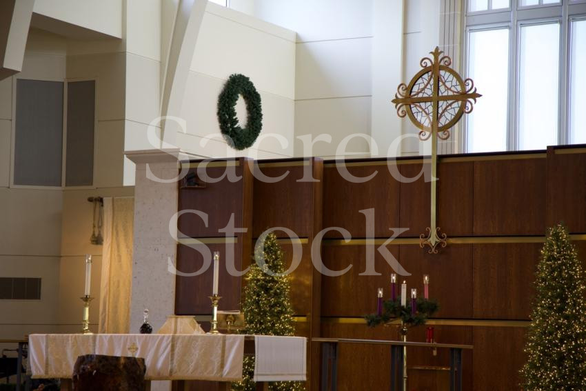Christmas Eve altar with cross